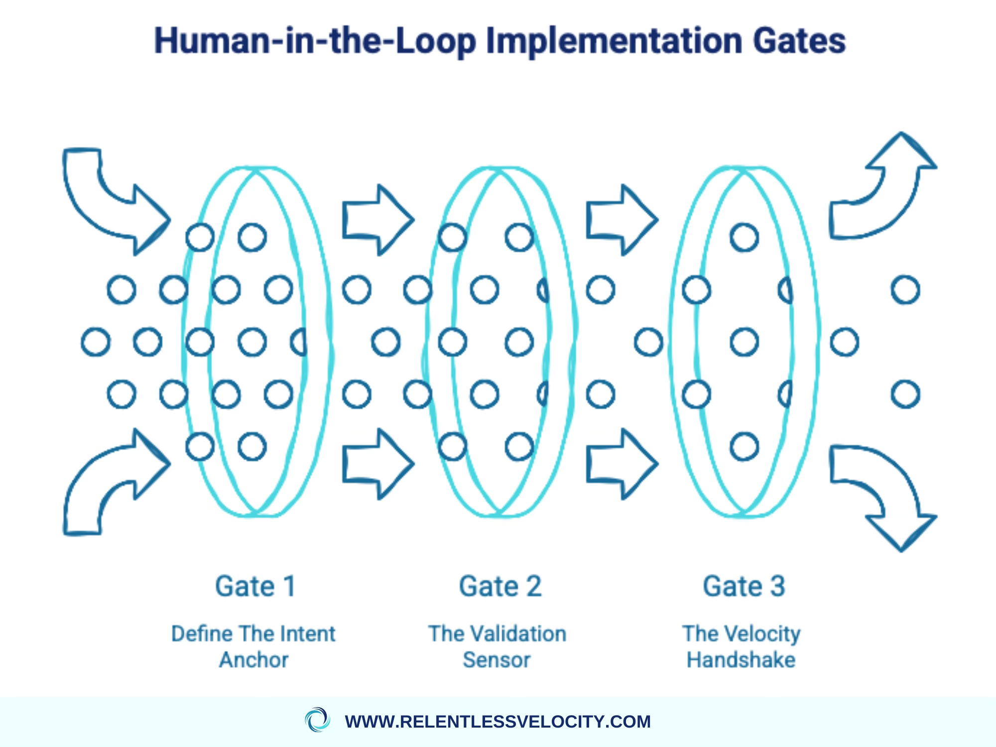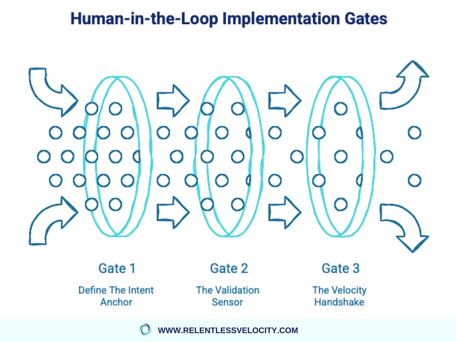 It doesn’t really matter what you’re managing. Overseeing a software development sprint, a global supply chain, or a sales-to-service handover, the minimal implementation of the HITL follows these non-negotiable gates:
